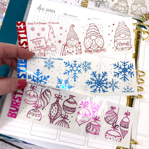 Foil - BURSTIES - Christmas- Gnomes, Ornaments & Snowflakes stickers (F-115+)