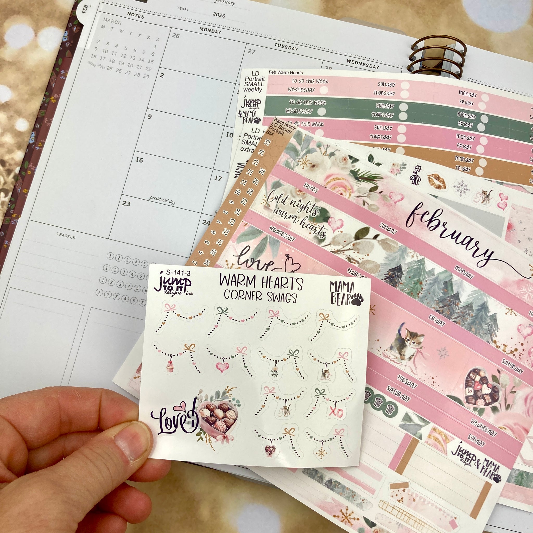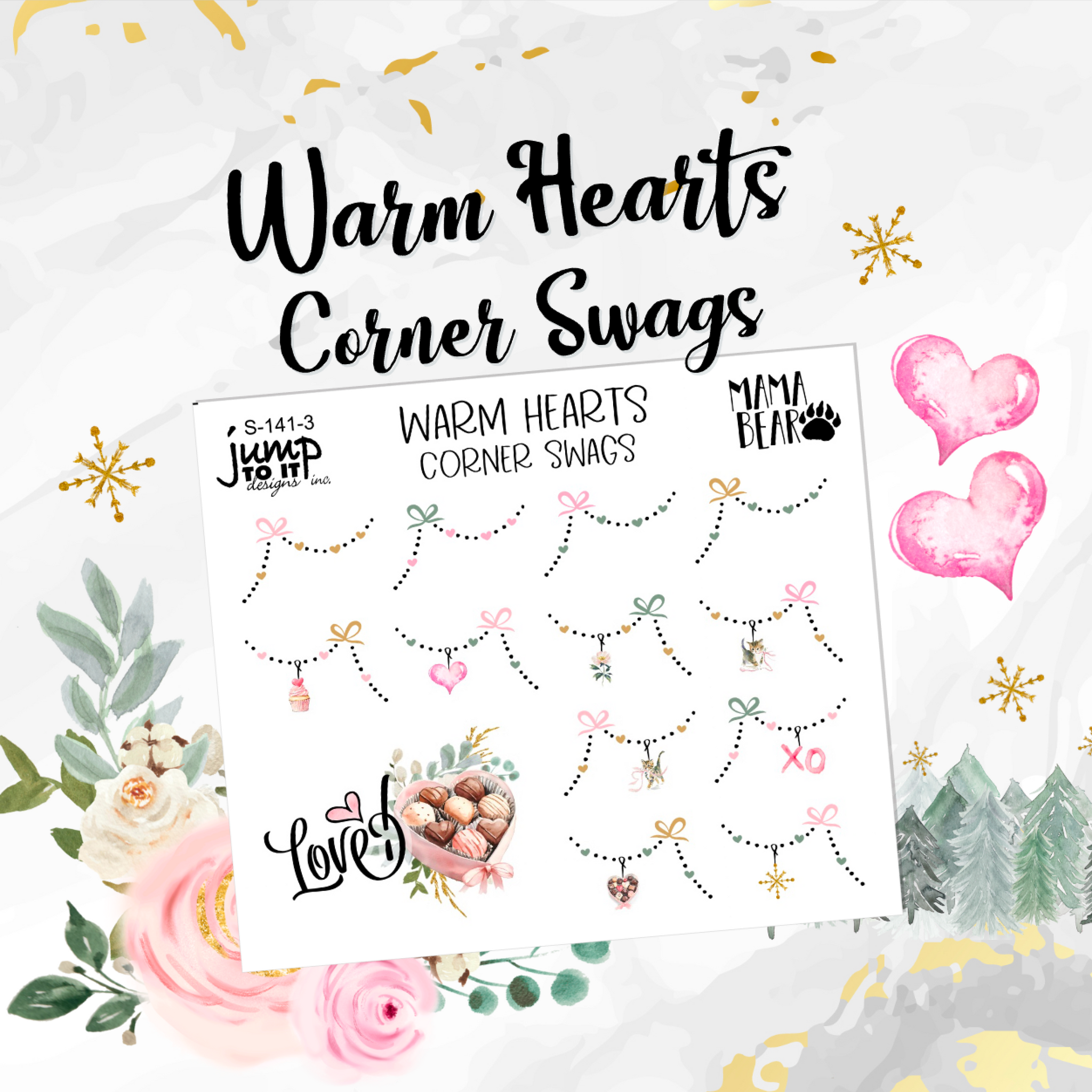 Beautiful Warm Hearts Corner Swags stickers to beautify your planner.