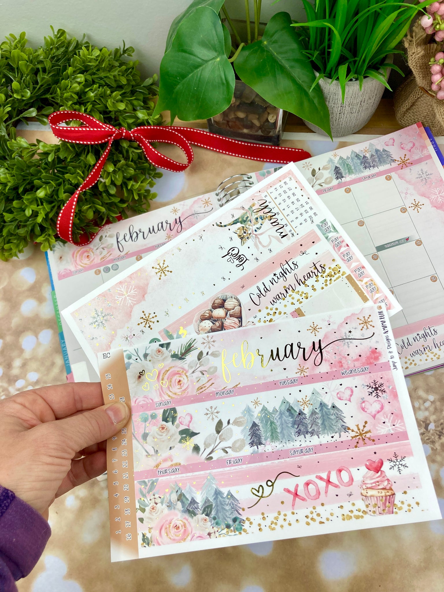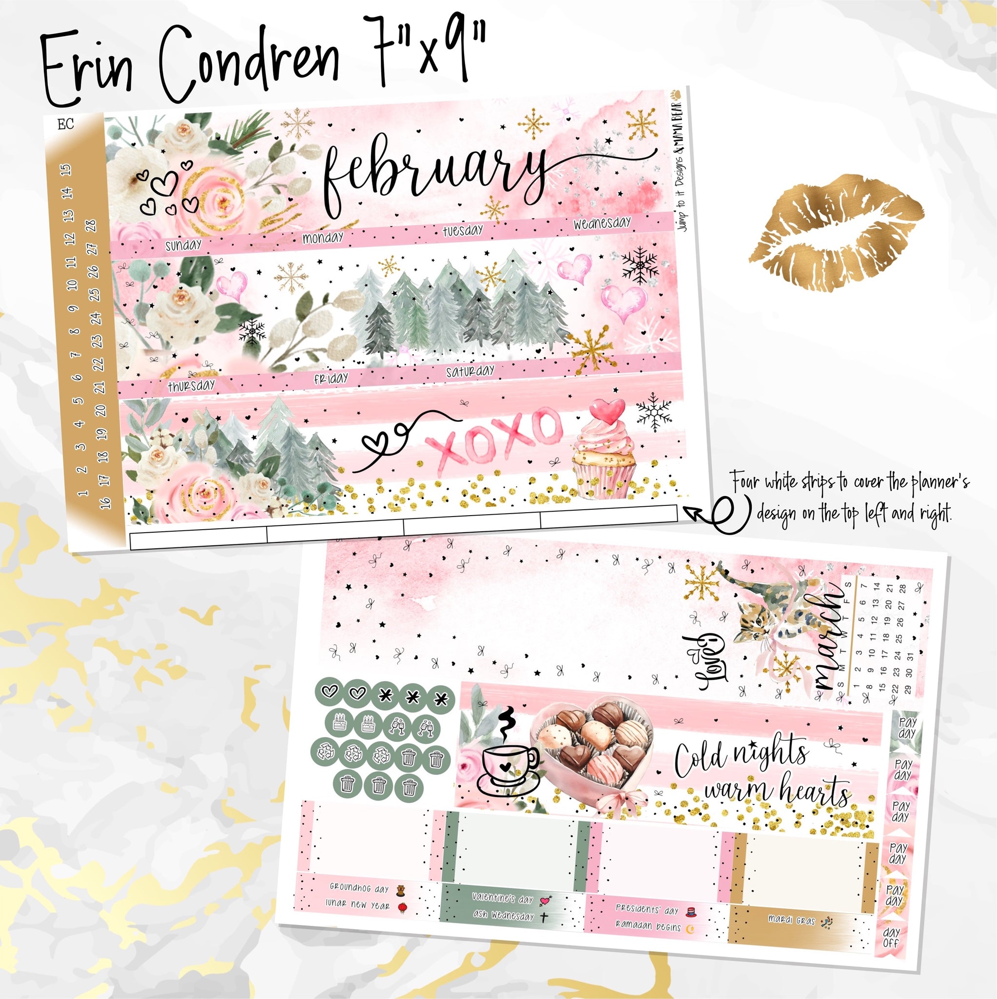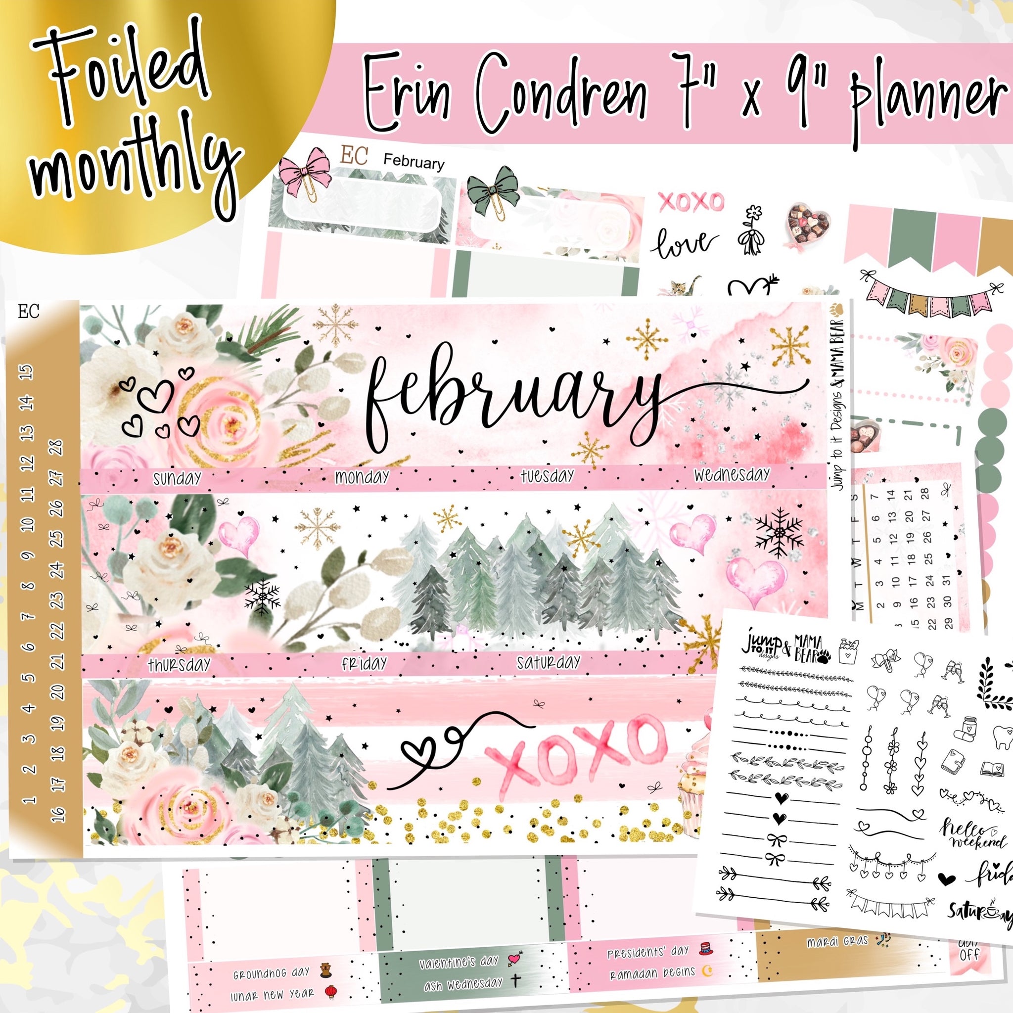 February Warm Hearts FOILED monthly - Erin Condren Vertical Horizontal 7"x9"