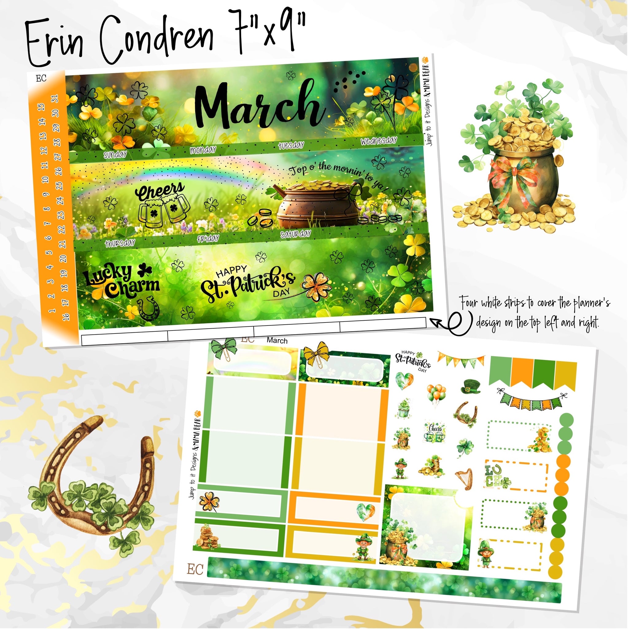 New Release March Lucky Charm FOILED monthly - Erin Condren Vertical Horizontal 7"x9"