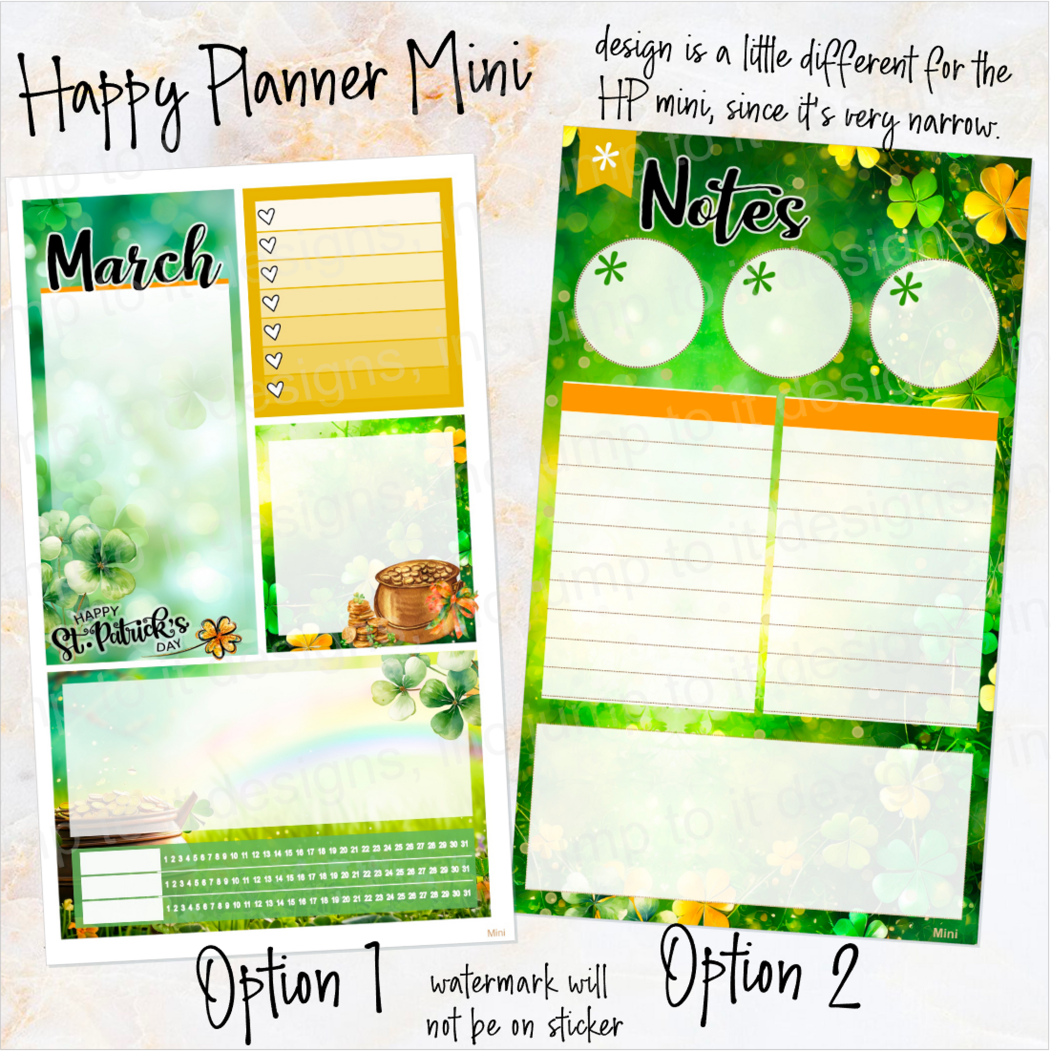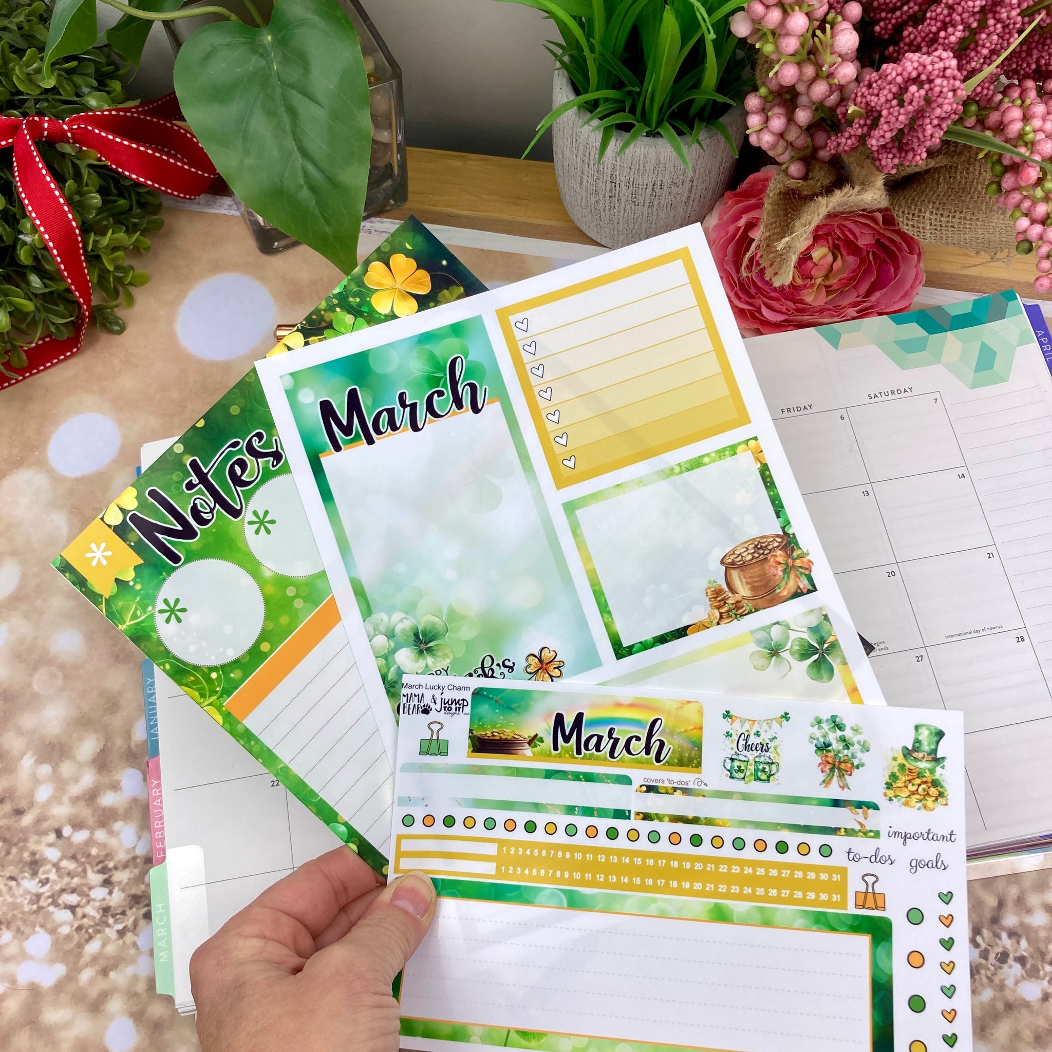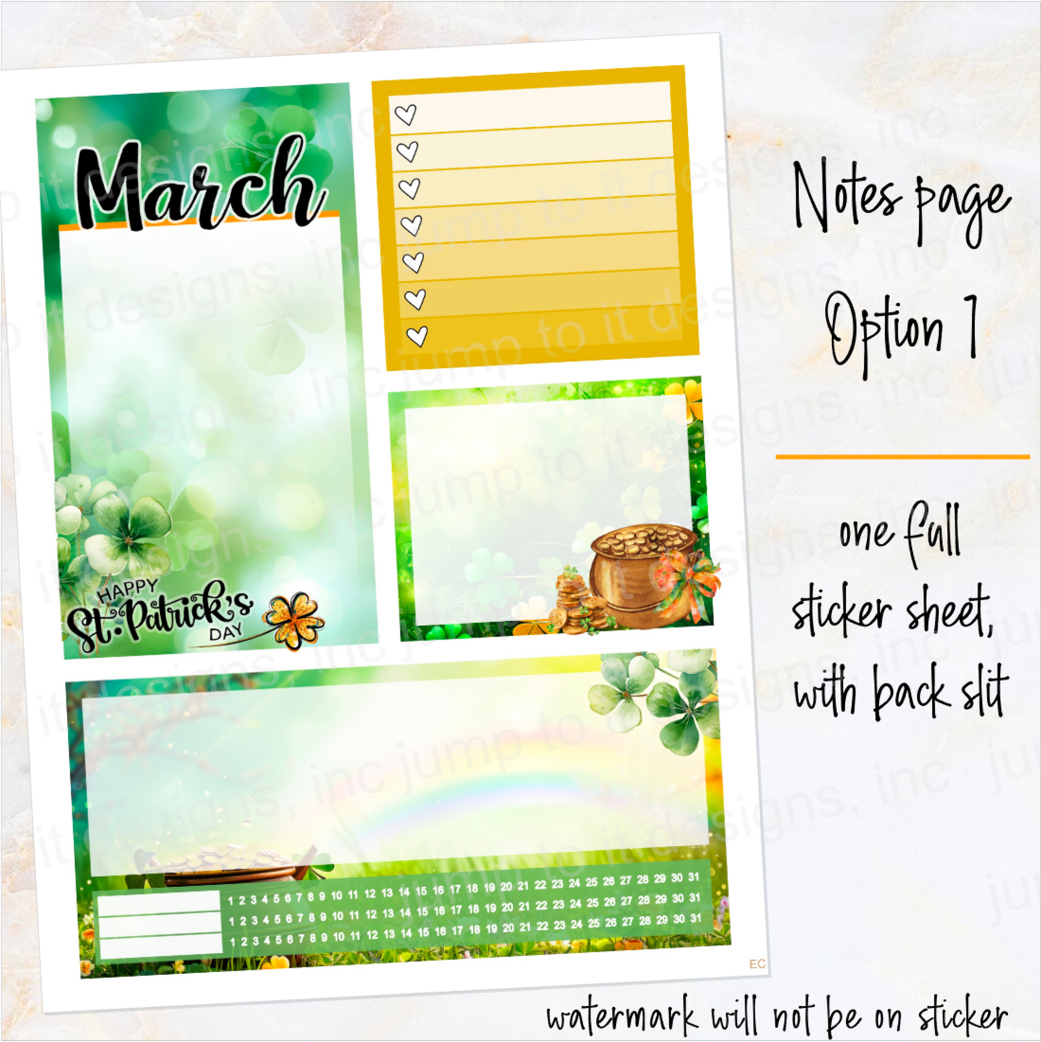New Release March Lucky Charm Notes monthly sticker -25/26 Erin Condren Vertical Horizontal 7"x9", Happy Planner Classic, Mini & Big
