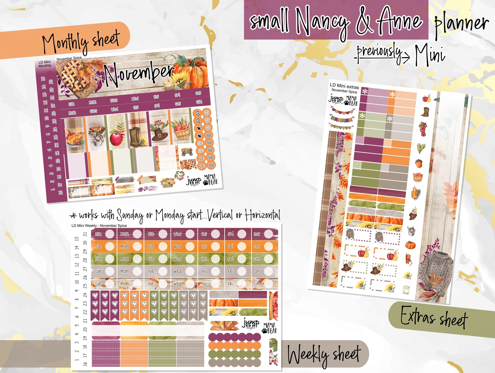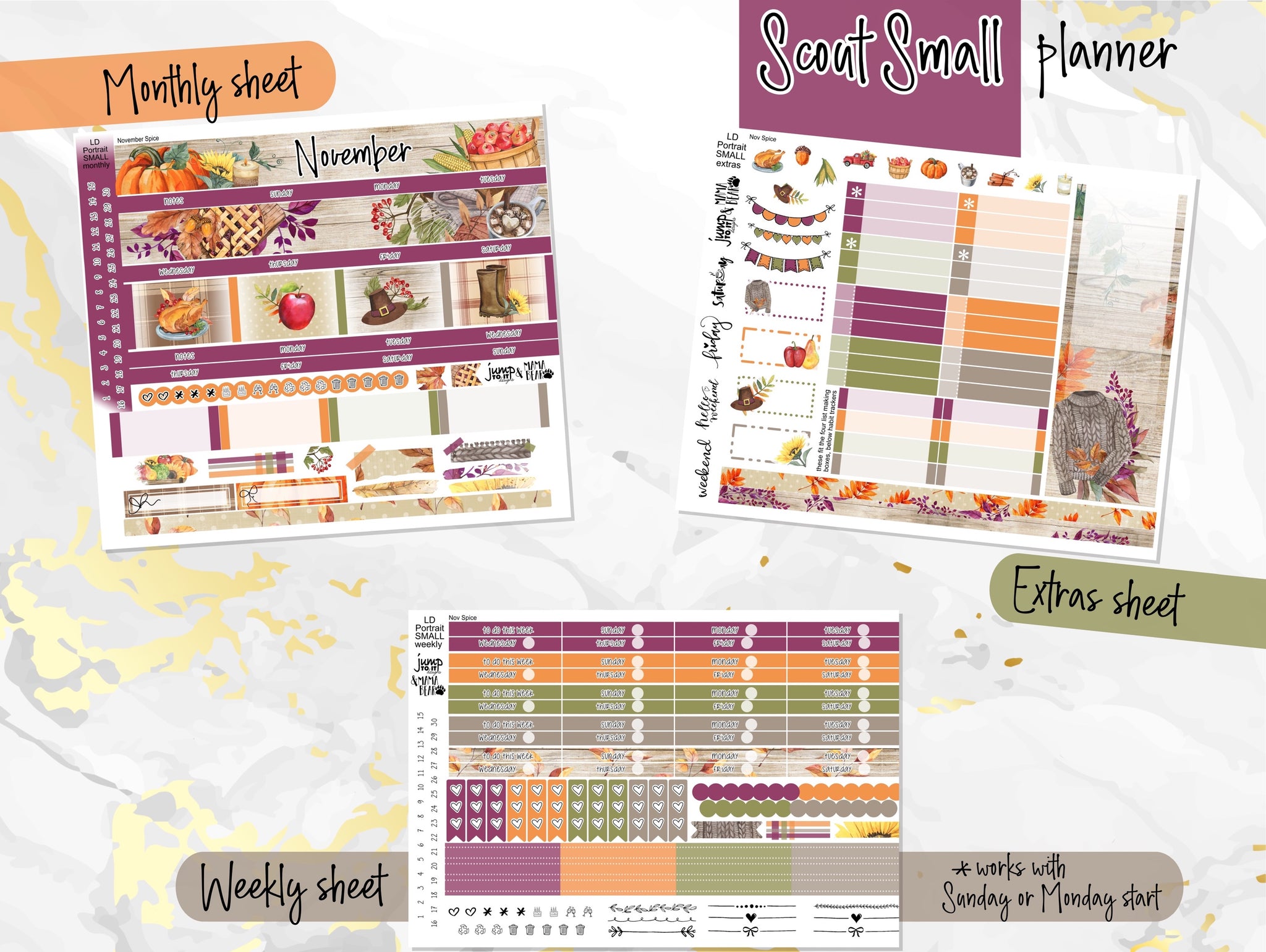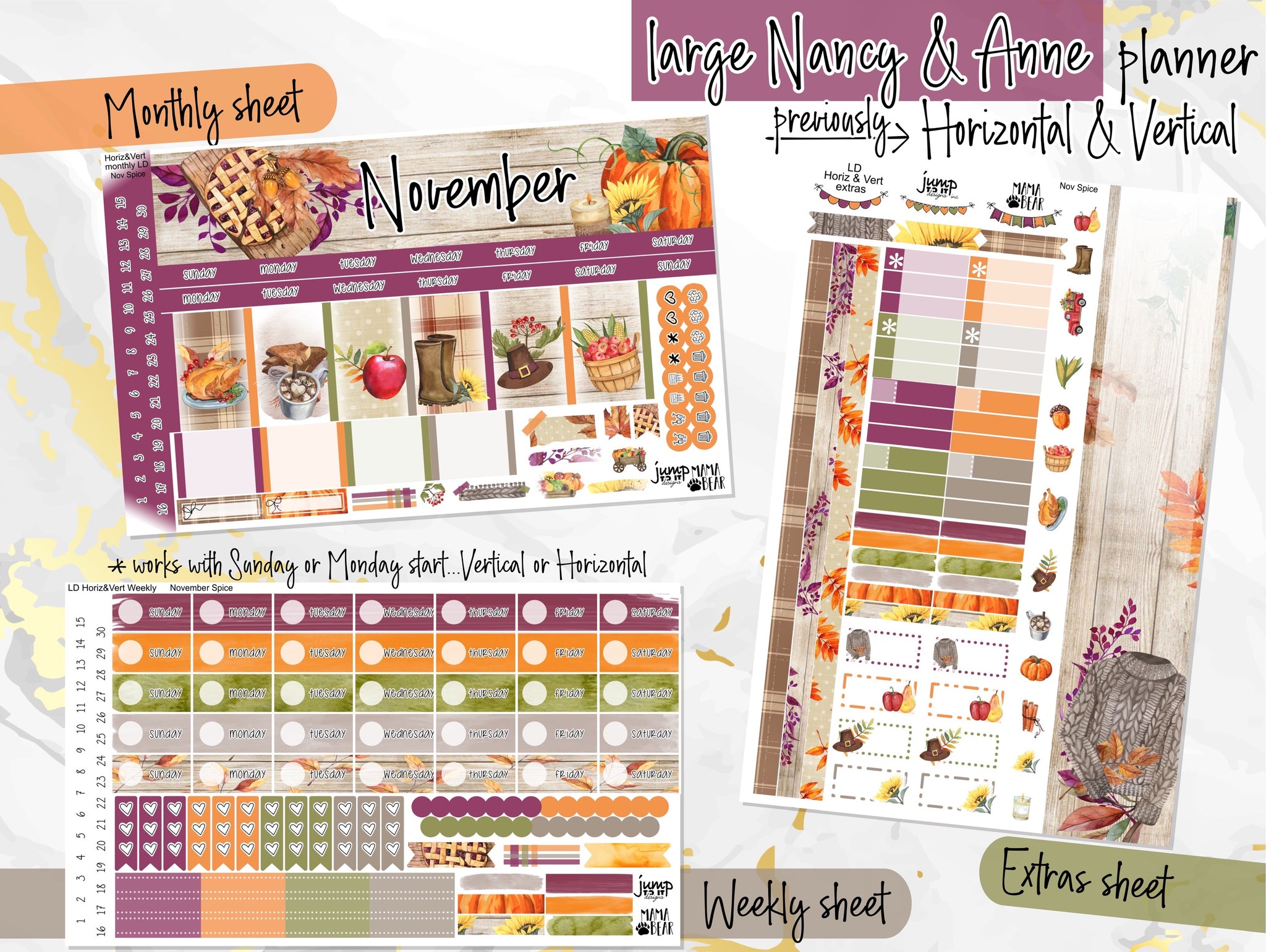 November Spice for Laurel Denise Planner stickers - Scout/Portrait, Anne/Vertical, Nancy/Horizontal, Rose/Project & Mini