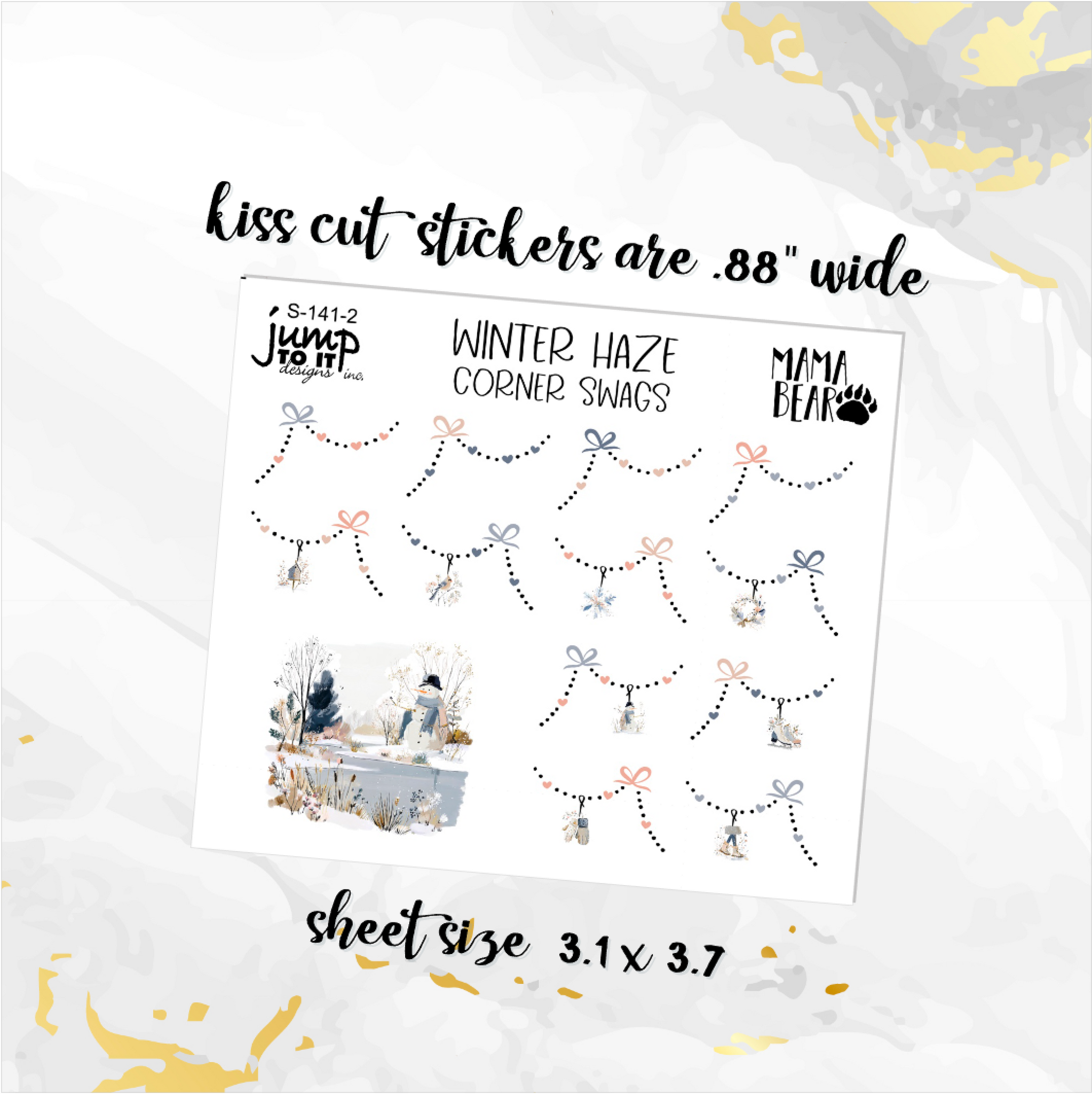 Beautiful Winter Haze Corner Swags stickers to beautify your planner.