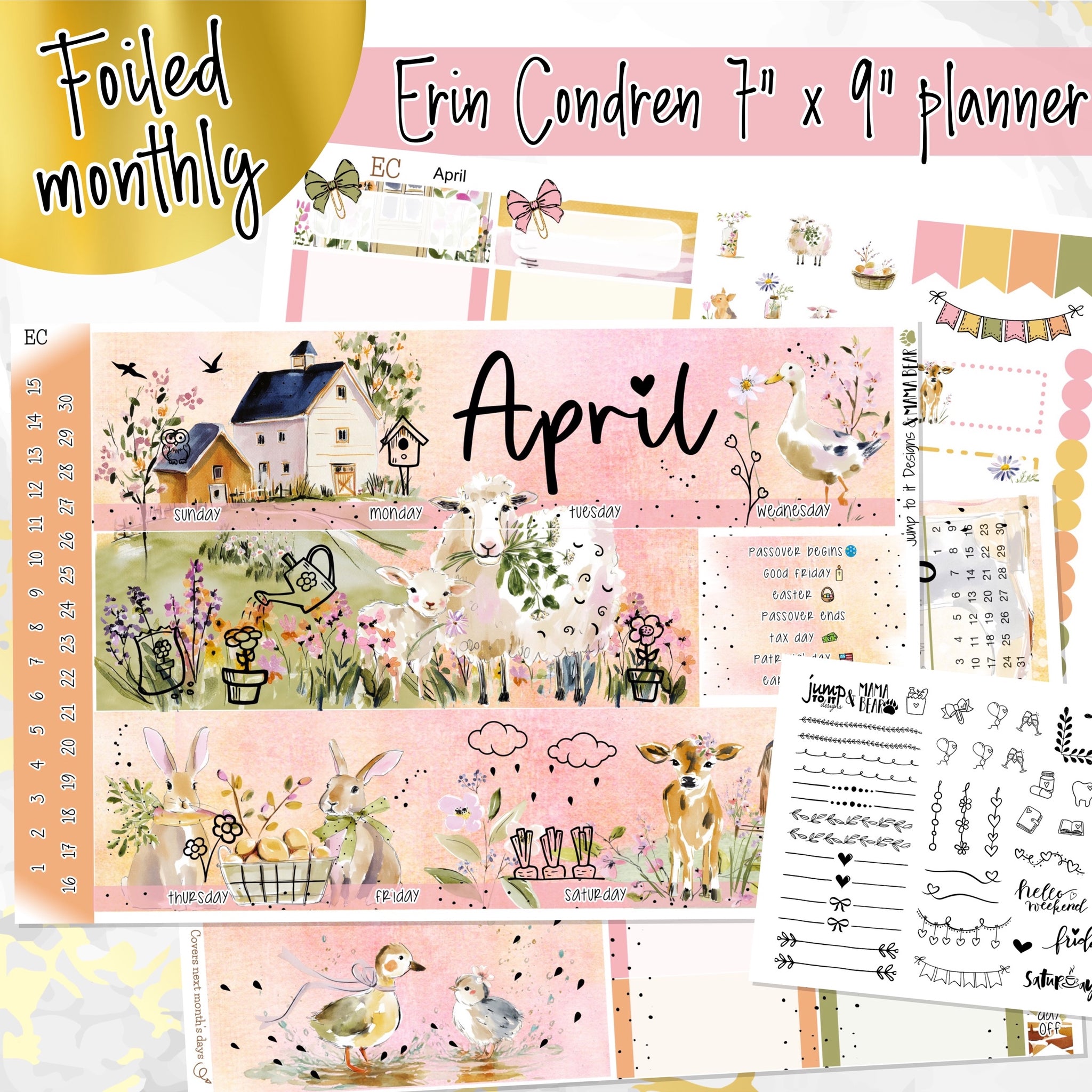 Erin Condren - Top Left- 1.56"/1.36” x 6.44”; Top Right- 1.56”/1.36” x 6.44”; Sidebar- 6.96” x 1.61”; One Box- 1.40” x 1.60”; Tab- 1.6” wide