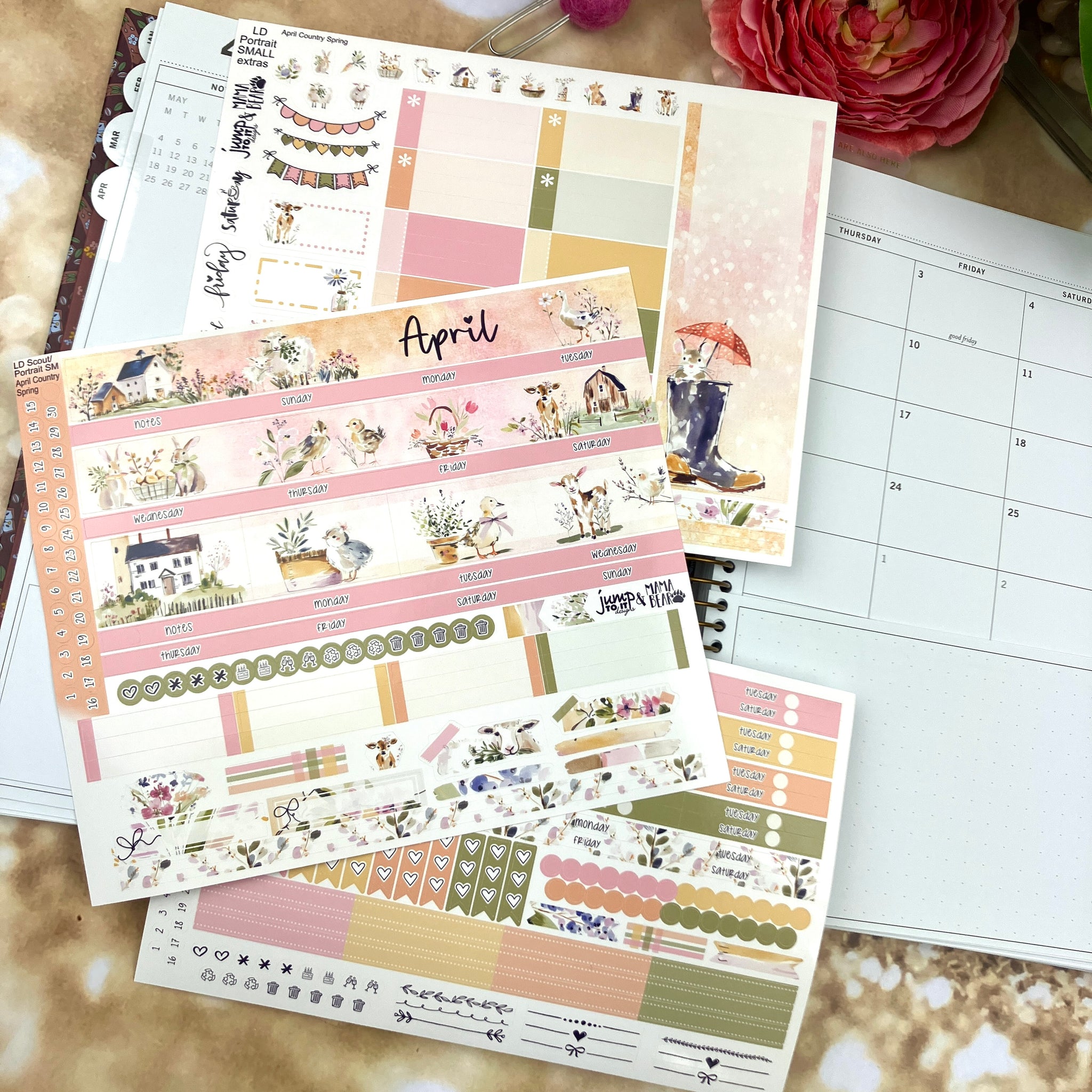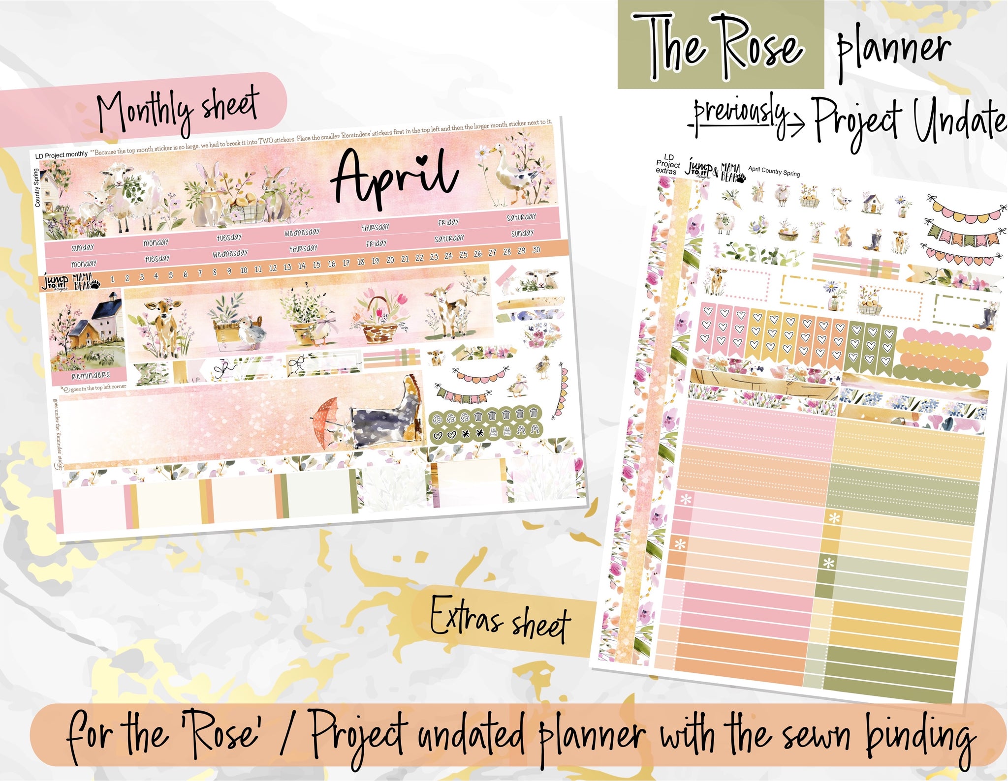 *Rose (select Project Undated) - sewn binding - two sheets - Monthly & Extras sheets.