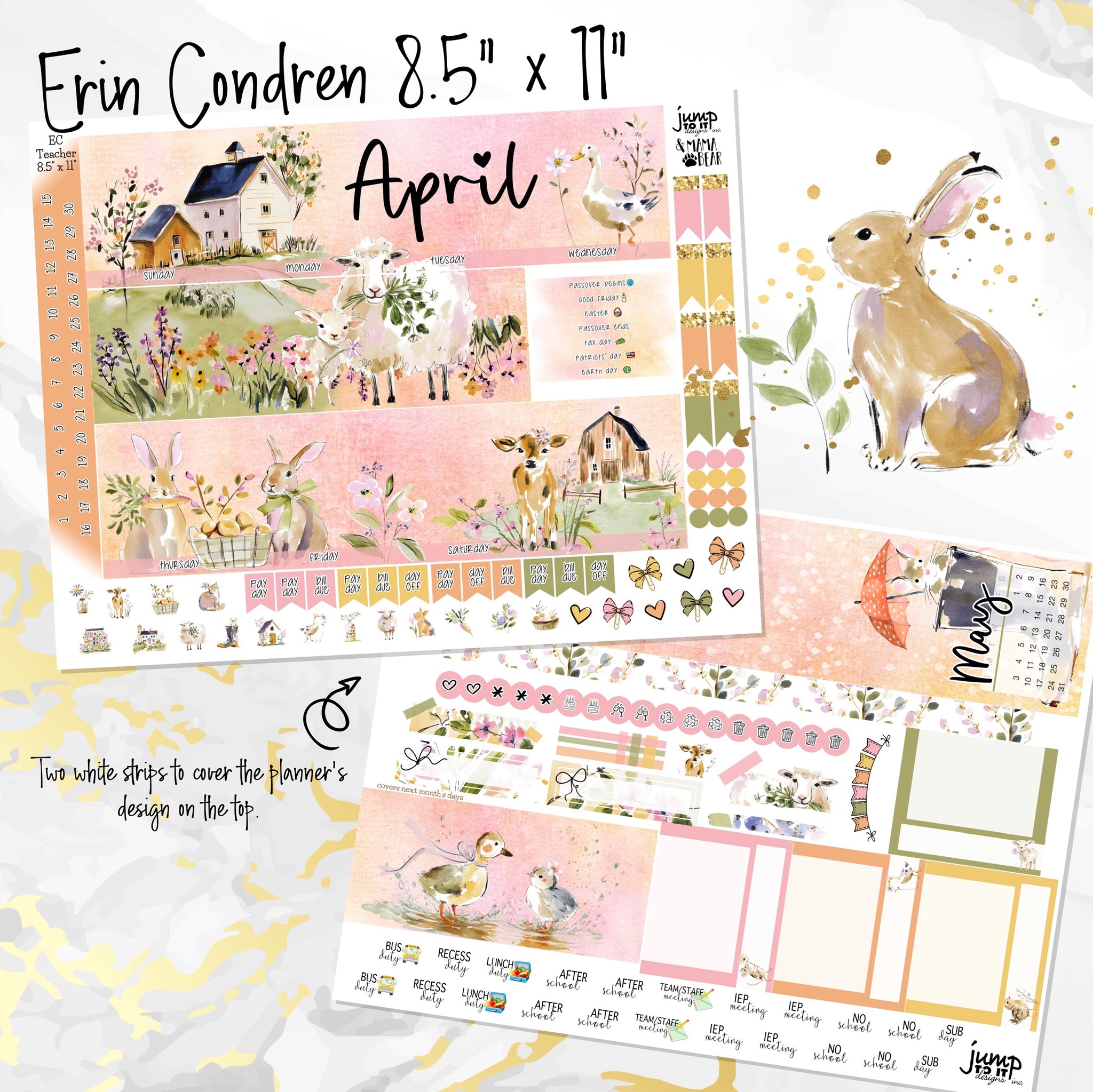 Erin Condren (8.5" x 11") Teacher - Top Left- 2”/1.8” x 7.83”; Top Right- 2”/1.8” x 7.81”; Sidebar- 8.72” x 1.96”; One Box- 1.73” x 1.94”; Tab- 1.95” wide