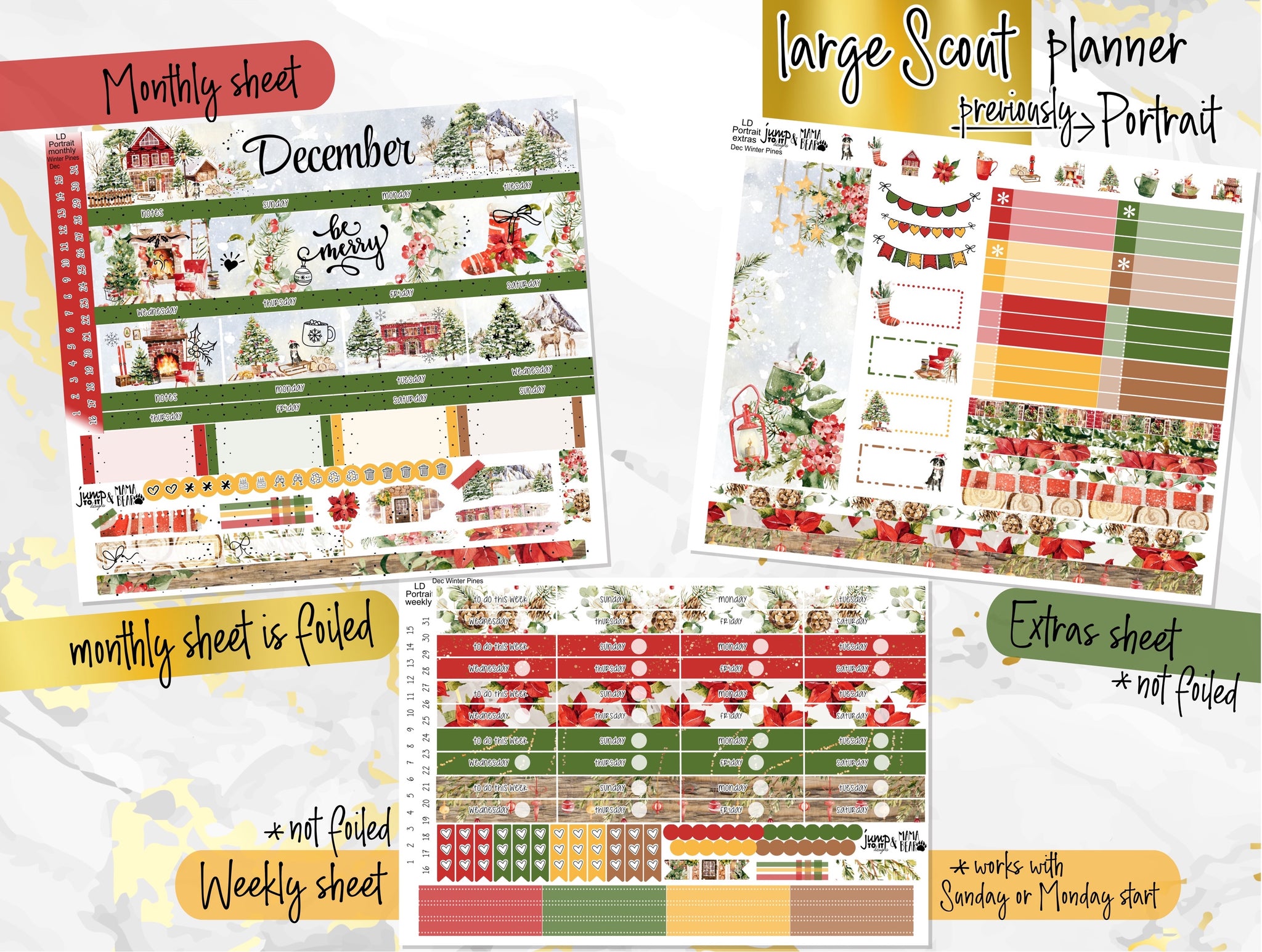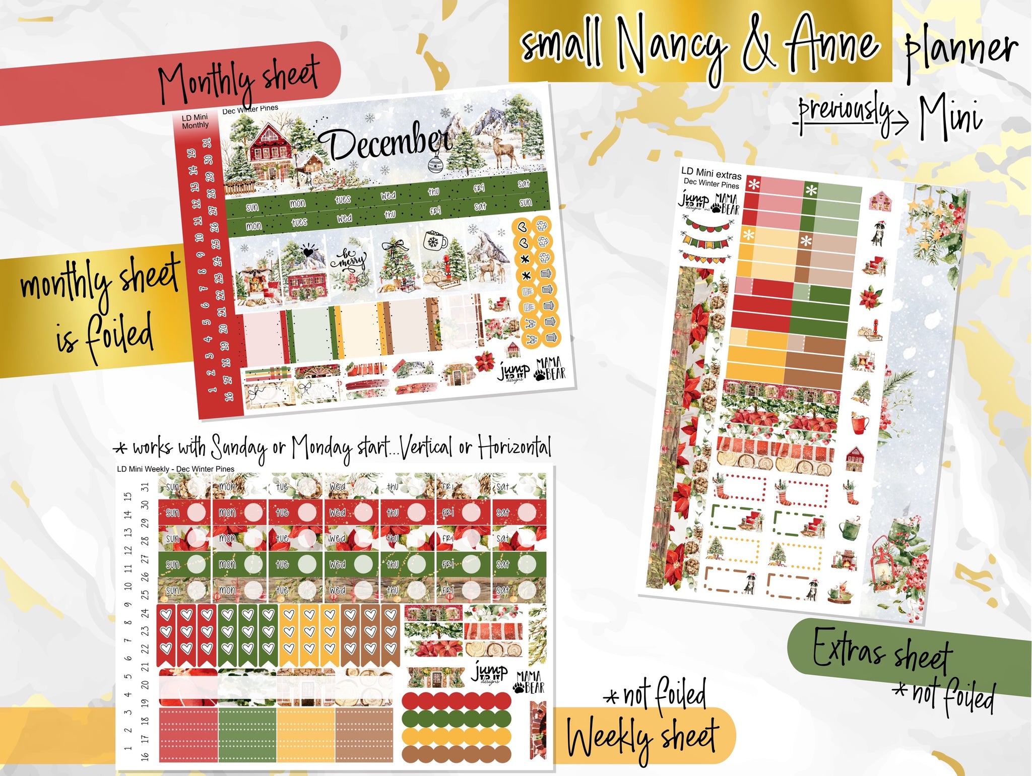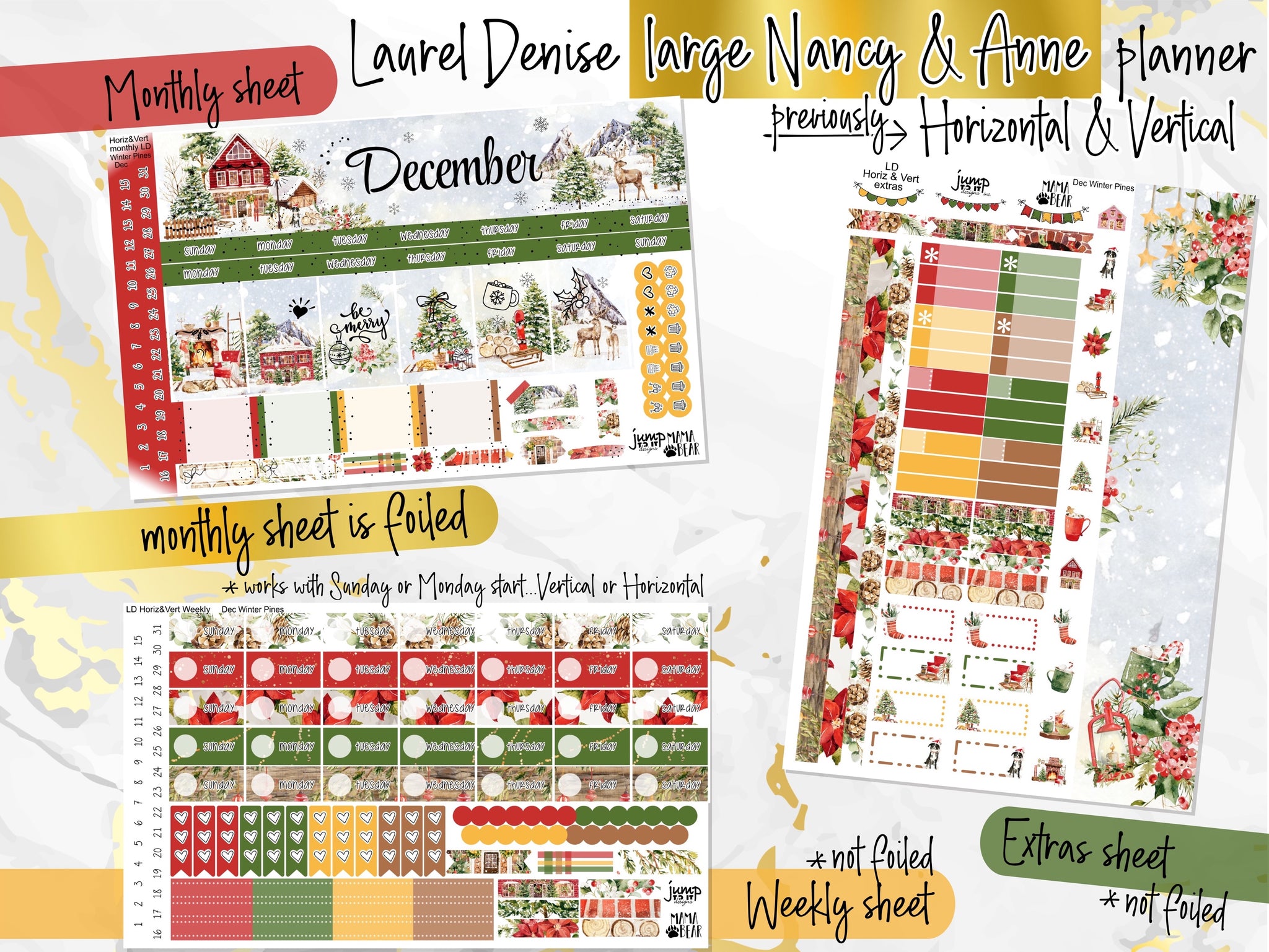 New Release December Winter Pines FOIL for Laurel Denise Planner stickers - Scout/Portrait, Anne/Vertical, Nancy/Horizontal, Small/Mini